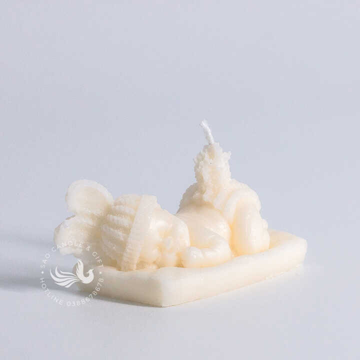 - Điểm nhấn trang trí dễ thương: Với hình dáng em bé nằm ngủ đáng yêu, nến là một vật dụng trang trí ấn tượng, giúp không gian sống trở nên ấm cúng và ngọt ngào hơn. Bạn có thể đặt nến ở phòng ngủ, phòng của em bé hoặc kệ sách, mang lại cảm giác bình yên và thư thái.