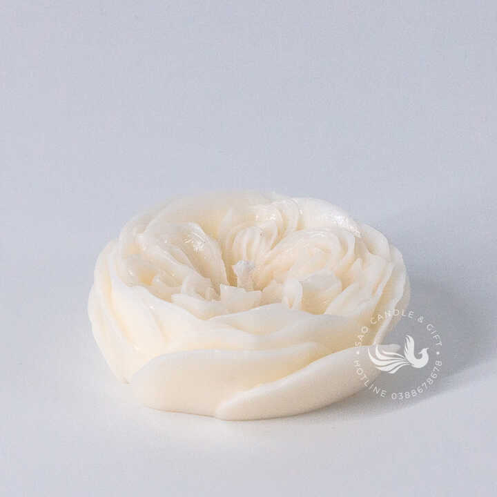 Nến Thơm Tạo Hình Hoa Hồng Anh là một cây nến thơm thủ công, được tạo hình tinh xảo như một đóa hoa hồng Anh đang nở. Nến có hình dạng một đóa hoa với các lớp cánh hoa dày, cuộn tròn và xếp chồng lên nhau một cách tỉ mỉ. Các lớp cánh bên ngoài lớn và ôm trọn lấy những lớp cánh bên trong, tạo nên vẻ đẹp đầy đặn, chân thực và sang trọng của loài hoa này.