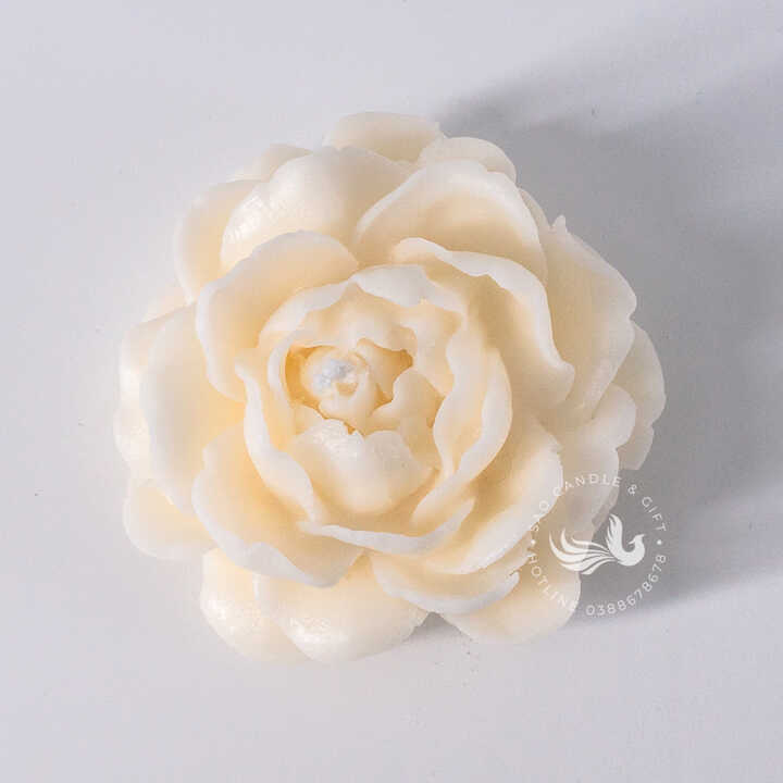 Nến Thơm Tạo Hình Hoa Nhài là một cây nến thơm thủ công, được tạo hình tinh xảo như một đóa hoa nhài đang nở rộ. Nến có hình dạng một bông hoa với nhiều lớp cánh hoa mỏng, xếp chồng lên nhau một cách tỉ mỉ. Các cánh hoa ở phía ngoài lớn, nở rộng, trong khi các lớp cánh ở trung tâm cuộn tròn, tạo nên một tổng thể chân thực và mềm mại như một đóa hoa thật.