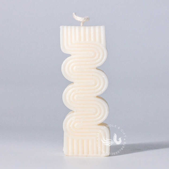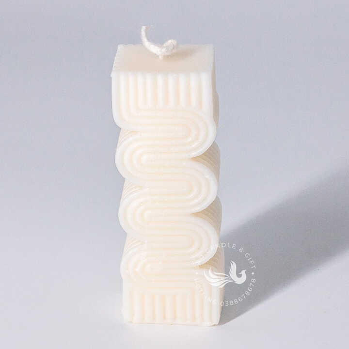 Nến Thơm Tạo Hình Lượn Sóng là một cây nến thơm thủ công, có hình dạng một trụ đứng với các đường cong lượn sóng độc đáo và hiện đại. Nến có hình dạng trụ thẳng đứng, nhưng thay vì bề mặt phẳng, nó được tạo hình với các đường lượn sóng liên tiếp từ trên xuống dưới, gợi nhớ đến hình ảnh sóng nhạc hoặc các đường vân trừu tượng. Hai đầu trên và dưới của nến được làm phẳng với các đường gân nhỏ, tạo sự tương phản thú vị.