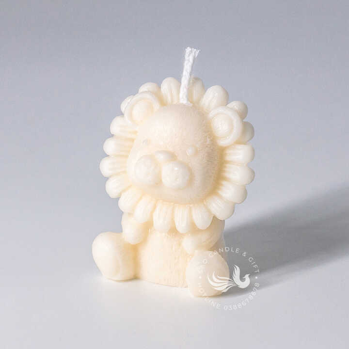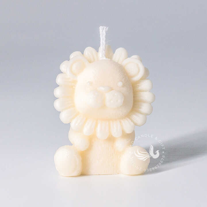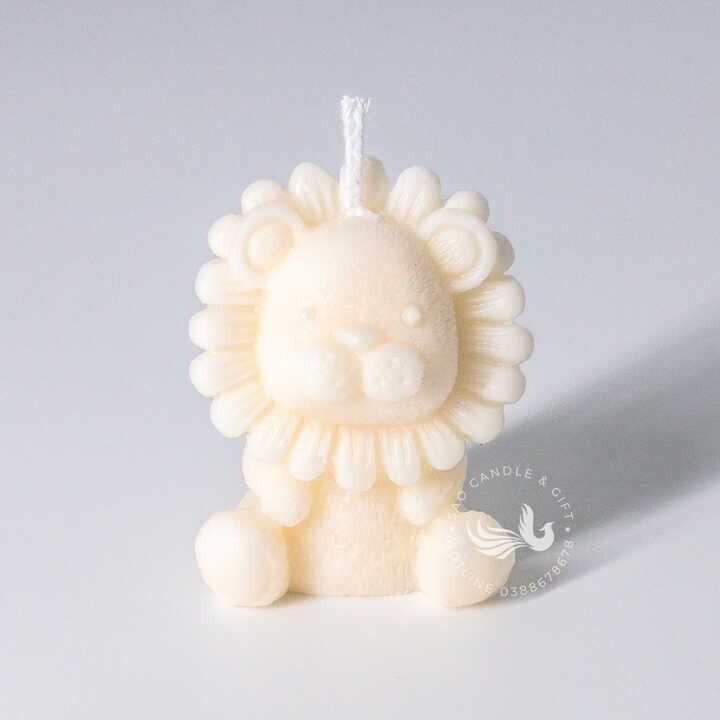 Nến Thơm Tạo Hình Sư Tử là một cây nến thơm thủ công, được tạo hình tỉ mỉ theo dáng một chú sư tử nhỏ đang ngồi. Cây nến có hình dáng một chú sư tử con đáng yêu, đang ngồi với hai chân trước duỗi thẳng và hai chân sau gập lại. Điểm nhấn là phần bờm sư tử được tạo hình cách điệu như những cánh hoa xếp lớp xung quanh khuôn mặt tròn. Khuôn mặt của sư tử có các chi tiết như mắt, mũi, và miệng được chạm khắc nổi, tạo vẻ ngộ nghĩnh, thân thiện.