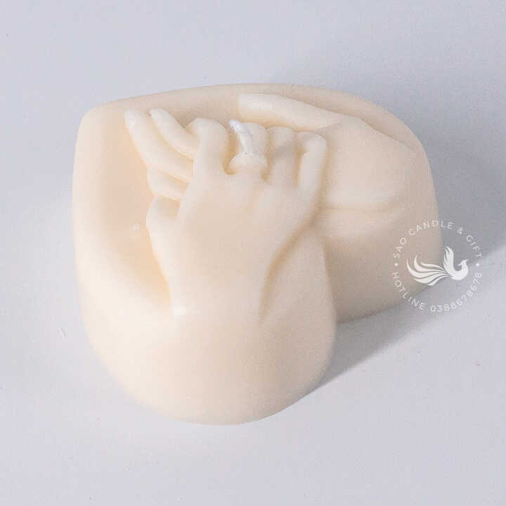 Nến Thơm Tạo Hình Trái Tim Tay Trong Tay là một cây nến thơm thủ công, được tạo hình tỉ mỉ theo dáng một trái tim lớn, với họa tiết hai bàn tay đang nắm chặt. Nến có hình dạng một trái tim đầy đặn, với bề mặt nổi bật hình ảnh hai bàn tay đang đan vào nhau. Trên ngón áp út của bàn tay bên trên có một chi tiết nhỏ mô phỏng chiếc nhẫn, nhấn mạnh ý nghĩa về tình yêu và sự gắn kết vĩnh cửu. Các đường nét được khắc nổi rõ ràng, tạo vẻ ngoài tinh xảo.